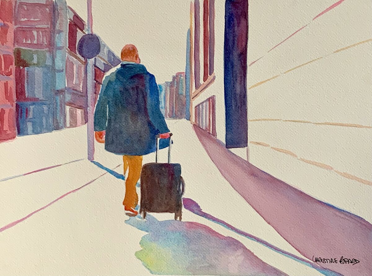 Travelling On Christine Beard 2023 Watercolour On Paper 31 cm W x 41 cm H