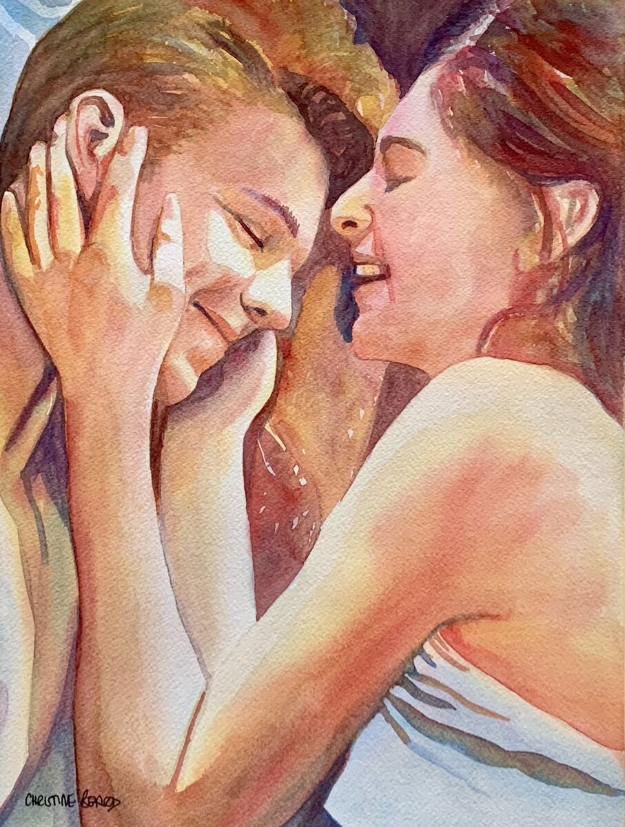 Pillow Talk and Shared Laughter By Christine Beard 2024 Watercolour On Paper 31 cm W x 41 cm H