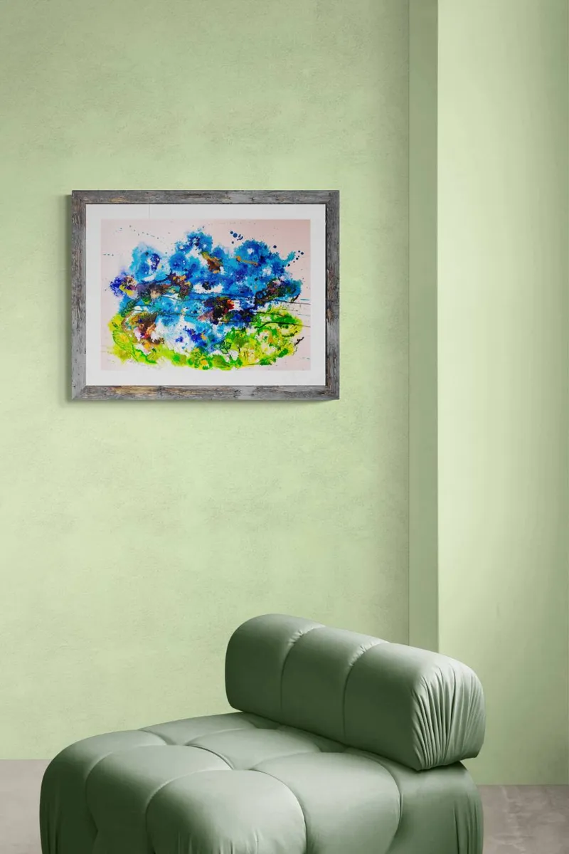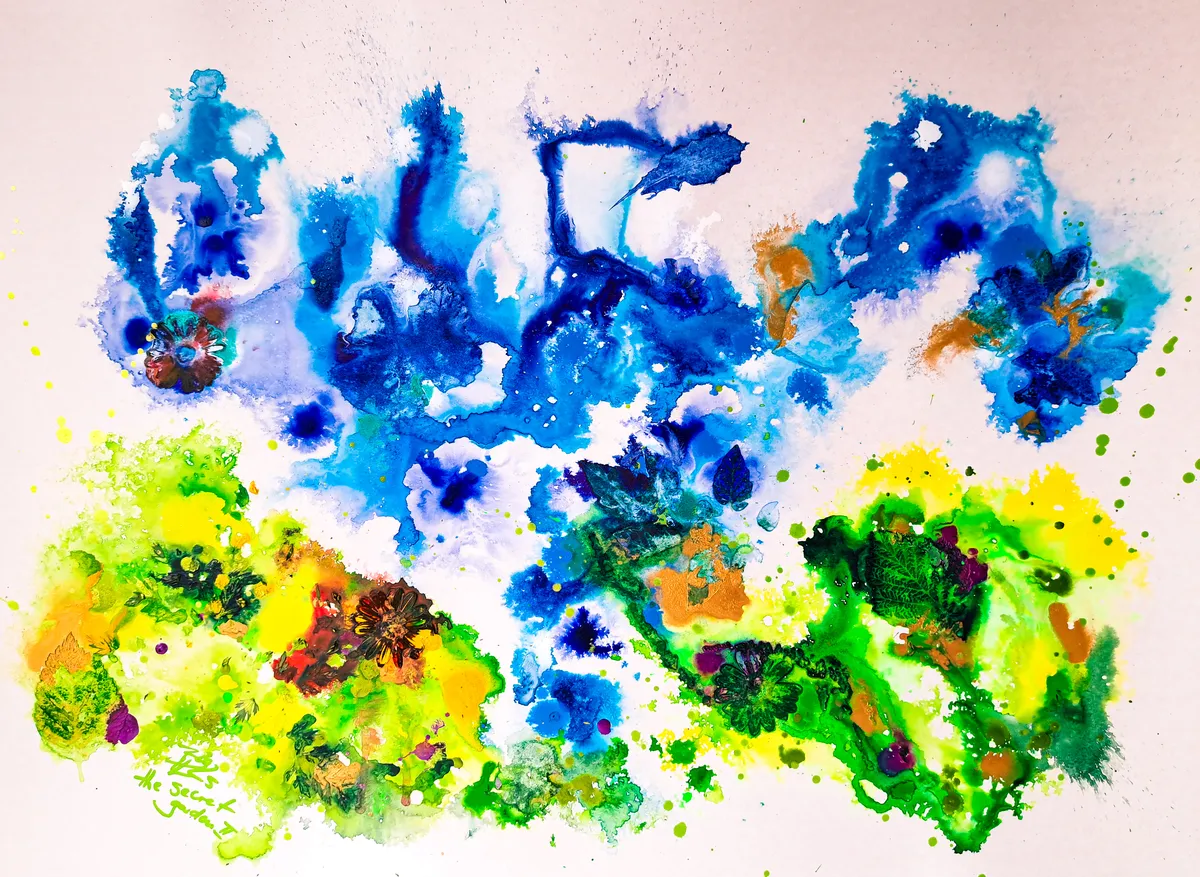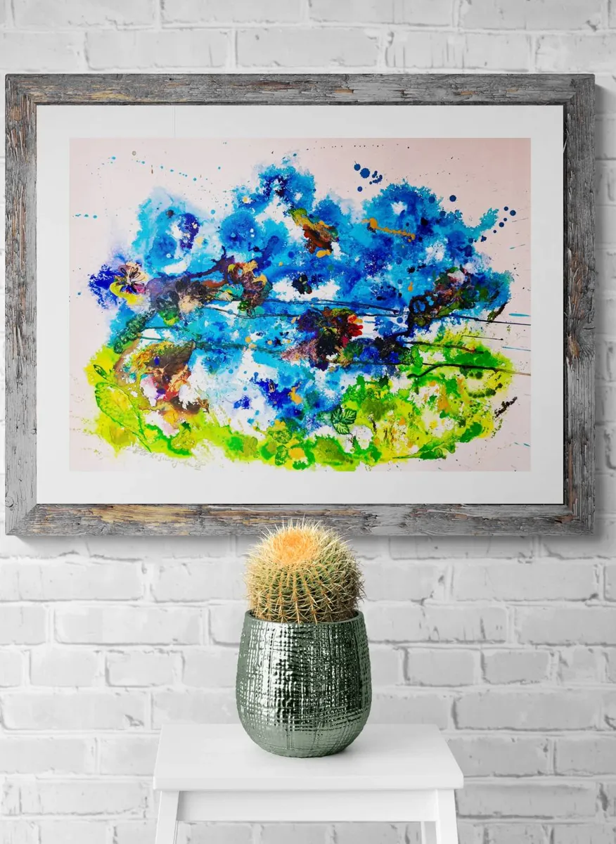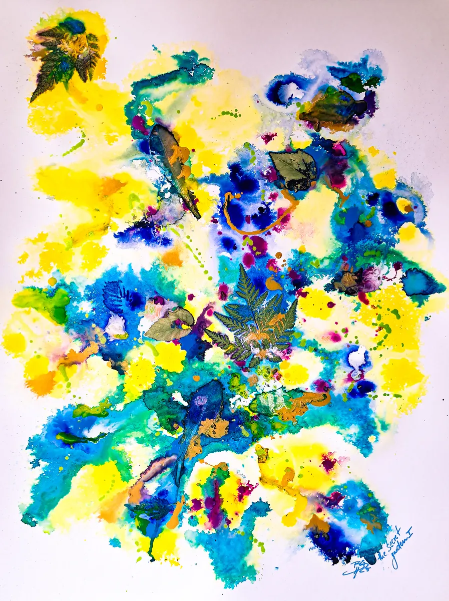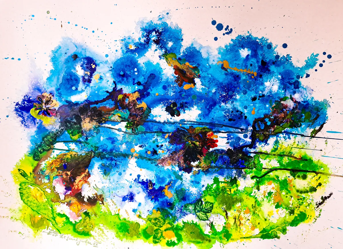 Mixed media on heavy duty art paper, 300g - unframed - international shipping - copyright barbaraharderlutz The first in a series of summer paintings done entirely in the city garden of my neighbors. Inspired by the luscious green wild garden, sunlight, songbirds singing and just being in the fresh air in the midst of the green riot all around. Joyous abd exuberant, life affirming and fun!