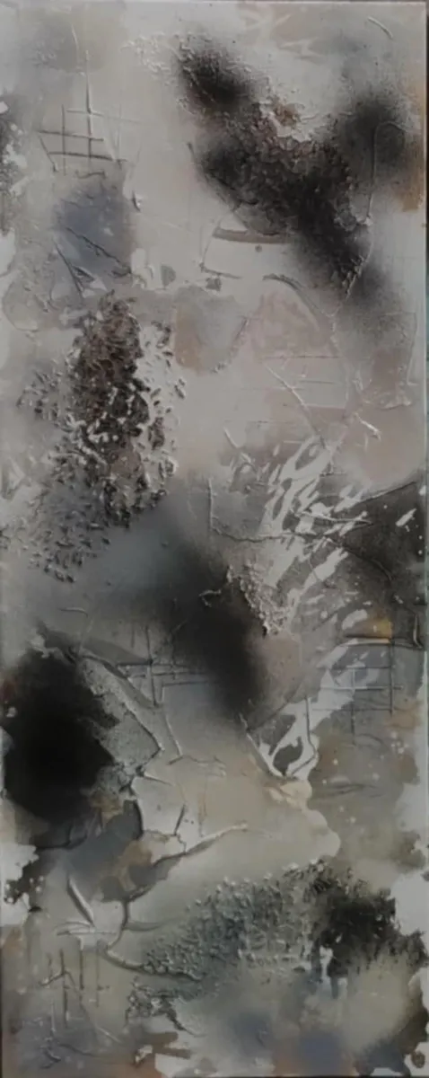 Cette toile est une explosion de couleurs neutres où les nuances se mélangent. Les formes fluides et les contrastes créent une harmonie dynamique où l'abstrait devient infiniment expressif Technique mixte sur toile galerie 16'' x 40'' - Peut se s'installer dans le sens voulu. - Mixed Media on gallery canvas 16'' x 40'' -- Can be inserted in any direction you want ---- Toile unique - Aucune reproduction 🎉Certificat cadeau disponible🎉 Possibilité de payer en trois versements